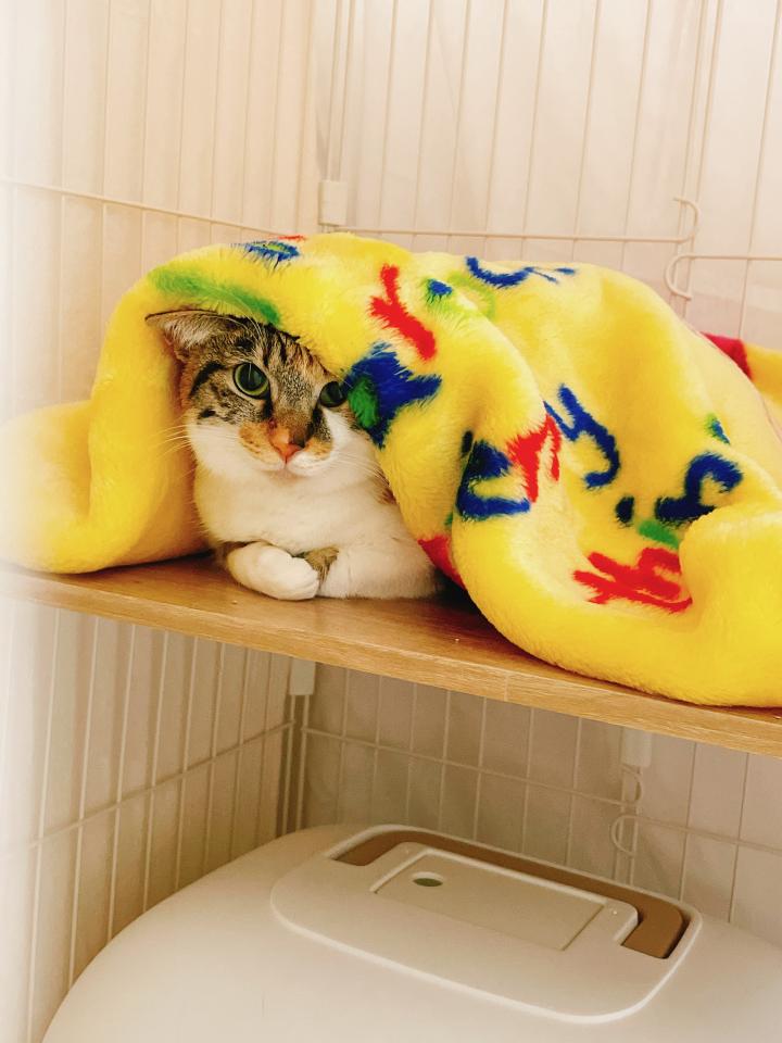 昨夜は電気を消してから夜鳴きと、爪研ぎが倒れたことでびっくりしたのか大きな音を立てていたので見に行くと初めてシャー!と威嚇をしていました。刺激しないように触らず構わず。簡単に片付けをして空になっていたのでご飯を入れて、ご機嫌取りにおやつを少しだけあげると「シャー!!…ふんふん…ペロペロ…」と素直に食べてその後は電気を消した後数回鳴いていましたがすぐに静かになりました。