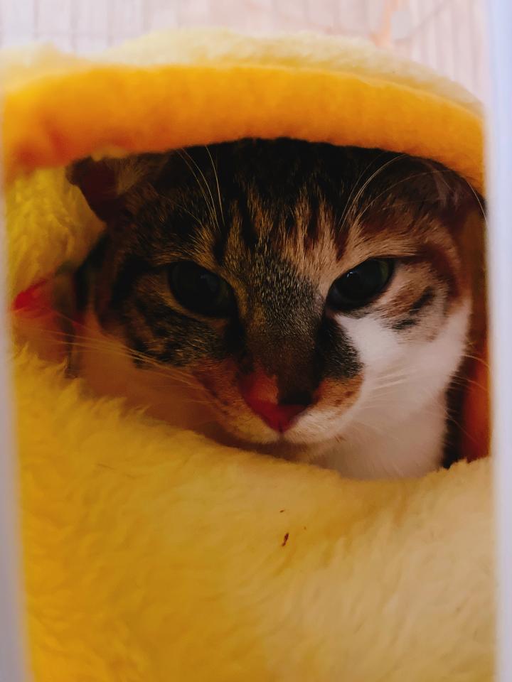 現在マンションの大規模修繕のため、うちに来たばかりで工事音という福ちゃんには過酷な環境なのでストレスが不安ですが、工事音が収まってからちゅーるを少しお皿に入れてあげると毛布のかまくらから顔を出してペロペロ。