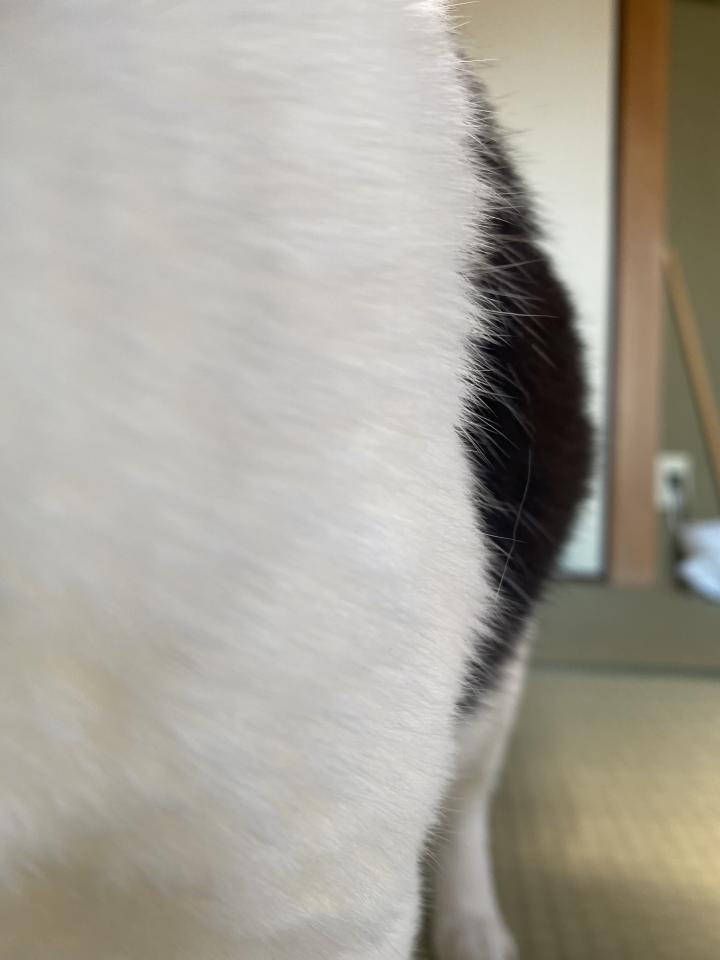 スマホケースの角にはお顔の短い白い毛が沢山つきました。