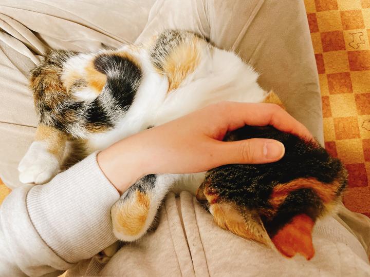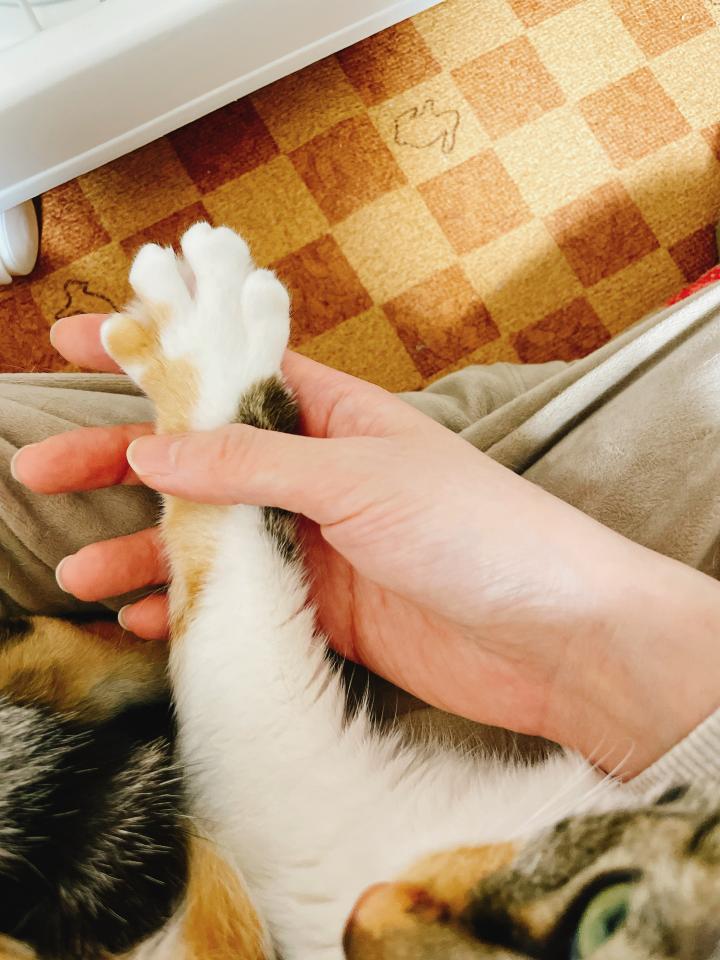 日毎抱っこして欲しい欲が強くなっているのか、いつもは私が手を伸ばすまでケージ2段目でゴロニャンしながら待つのですが昨日はトイレ掃除をしていたら待ちきれなかったようで膝の上に飛び乗って来ました。