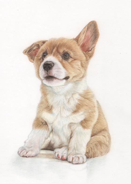 昨日は、鉛筆でやっぱりコーギーの絵を1枚描きました。