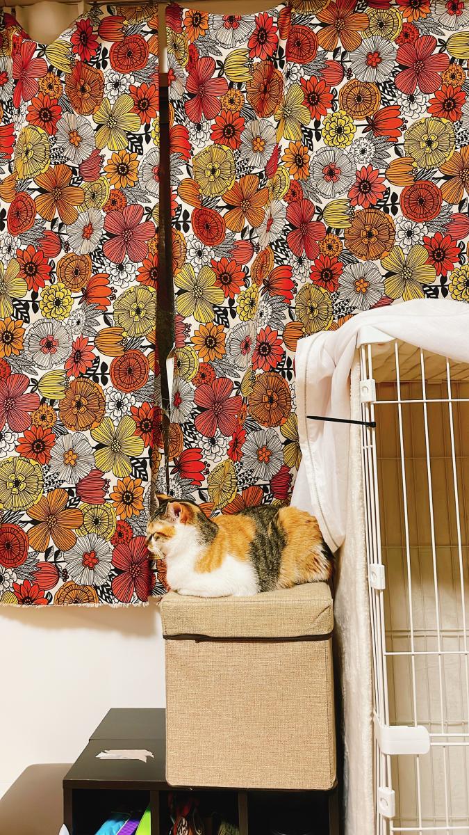 最近やっとケージ外にくつろげる場所を見つけた福ちゃん。