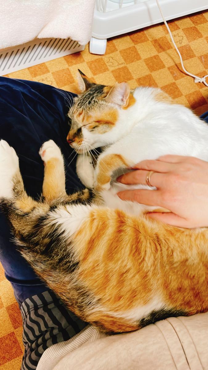 写真はどれだけ眠くても私が声をかけると抱っこなでなでして欲しくて起きてくる寝起きの福ちゃんと、抱っこなでなでされてご満悦な福ちゃん。