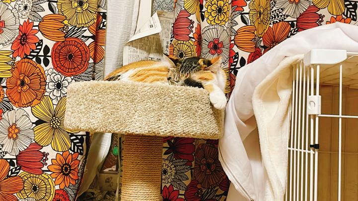 Amazonの安いコンパクトキャットタワー、気に入ってくれたようです😊