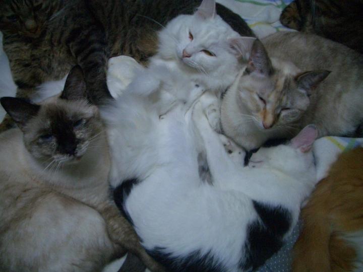 そんなアホな飼い主をよそに、猫達は団子形成中。。。