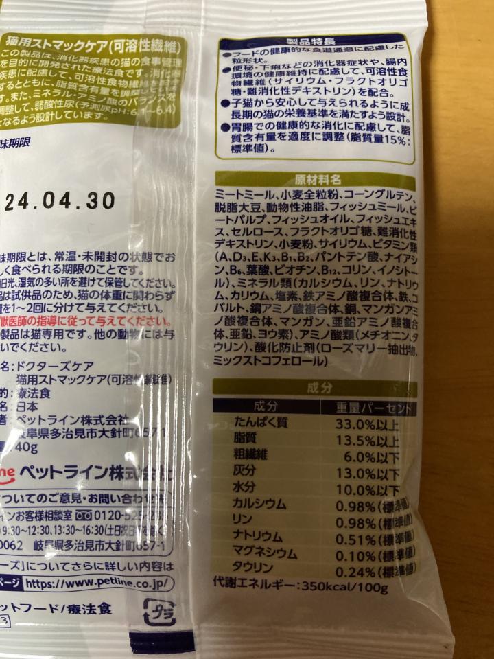 のサンプルを動物病院からもらってきました。