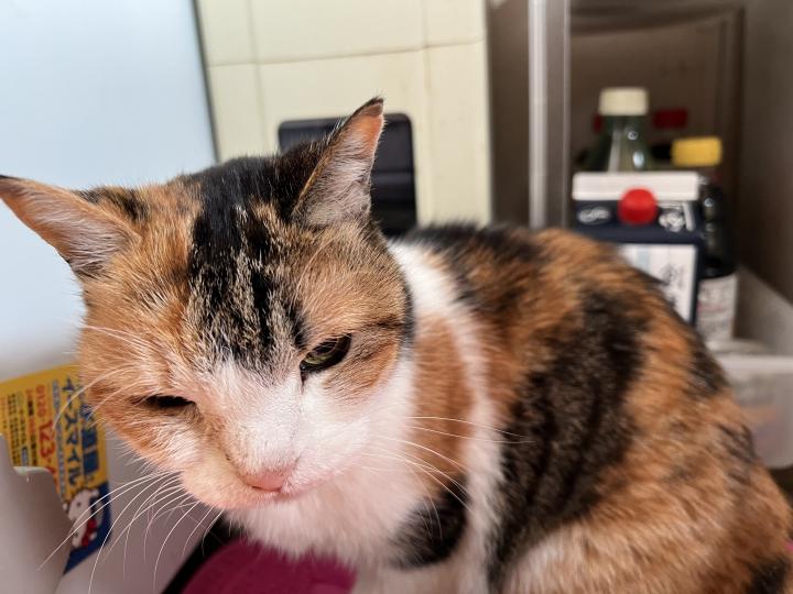 モモは寝ている事が多いですが、お薬飲ませて療法食を与えています🐾