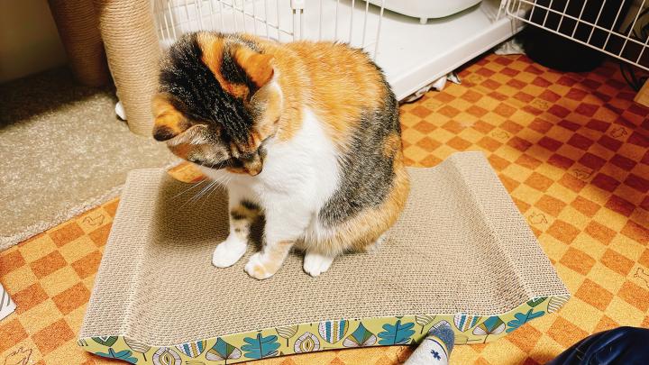 爪研ぎベッド?ソファ?的なものが届きまして、使ってくれるかな…動物ってよかれと思って買った物に限って全く使わんこと多いし…と思っていましたが完全に杞憂でしたね!!!