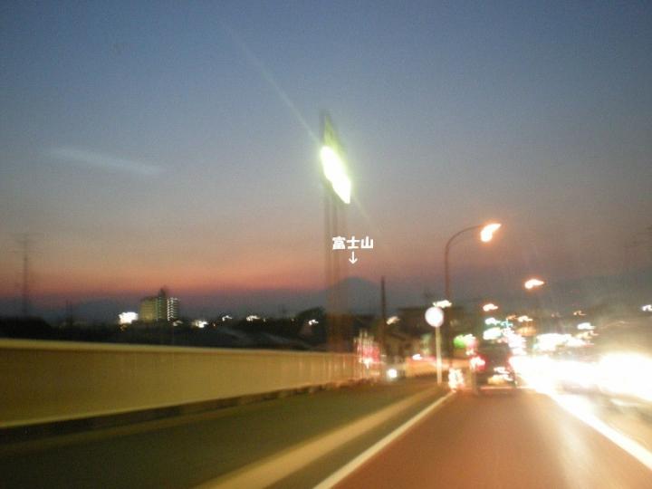 帰路、厚木インターに向かっていたときの夕暮れの空に浮かぶ富士山のシルエットを運転しながらパチリ。。。見えるかな?