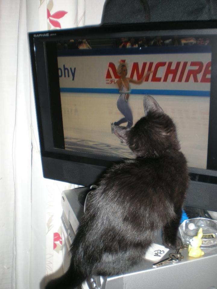 帰宅すると、ココがTVのフィギュアスケートに興味を示してました(*^ ^*)