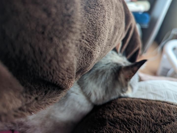 ここ1週間くらいはもう布団の上です。でも私が起きる直前くらいの時間になるとなぜか布団の中に入りたいと言い出すきな子さん。