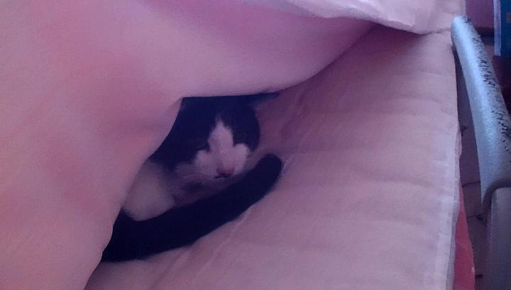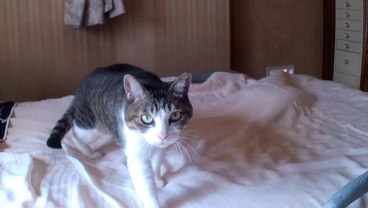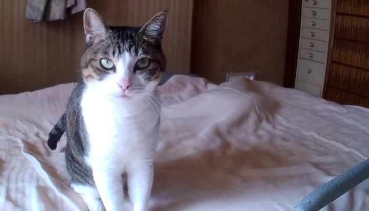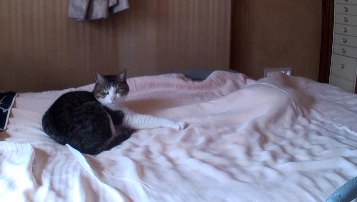 しばらくしてお部屋に入ると、七七保がベッドの上に。