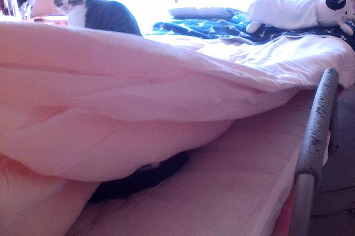 ひとりでゆっくりしてるとこ悪いけど、お布団全部敷きなおすし、退いてんか。