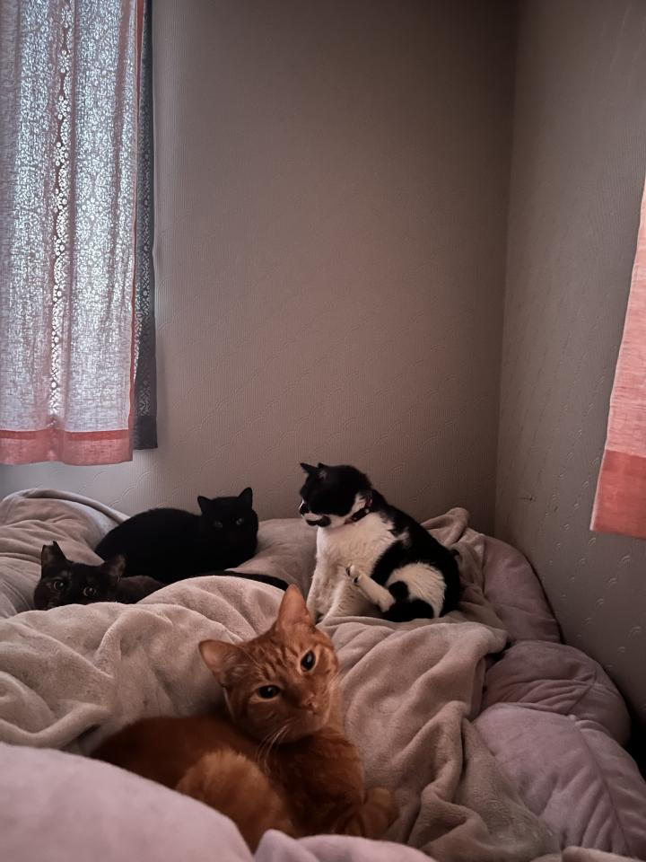 2匹の元保護猫と1匹の元地域猫と生活してます。2022年6月にサビのママと子猫4匹を保護した事で里親募集や、餌やり(臨時)などのお手伝いをしています。