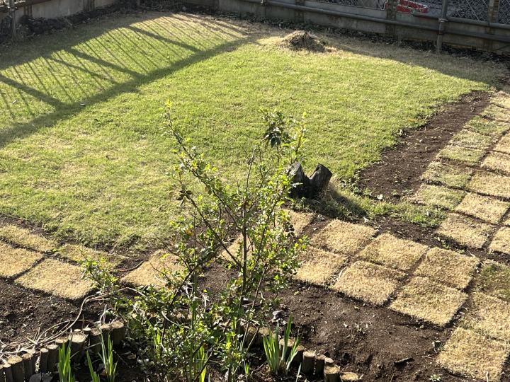 芝が緑になってきたーっ