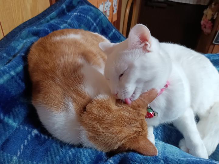 もっちー「この子ったら、仕方ない子ねぇ、夜中に遊んでいたのね、ペロペロ」