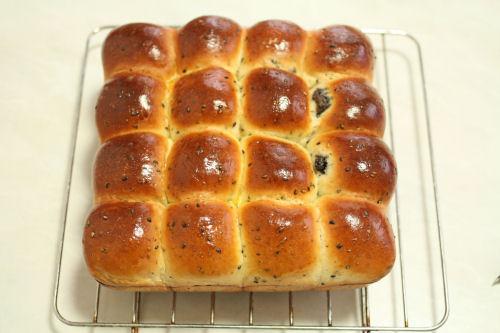 黒ゴマ入りの生地を16等分して、右側2列8個は胡麻あん