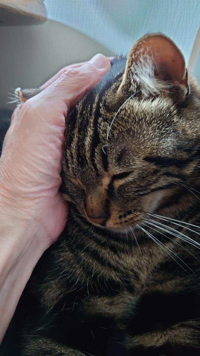 私はうちの猫ちゃん達にも [撫でる] というよりはお顔の近くに掌をかざします。