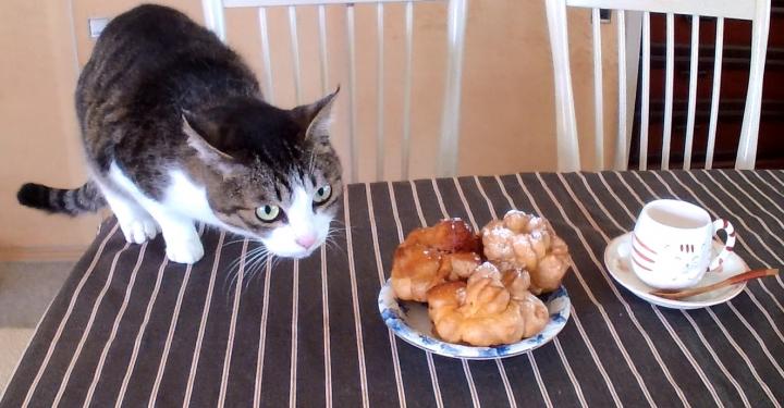 「こニャいだも、ちぅくりいむ、食べてたニャ。」