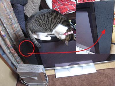 こっちは古いTV 爪とぎの跡が痛々しい ^^;;
