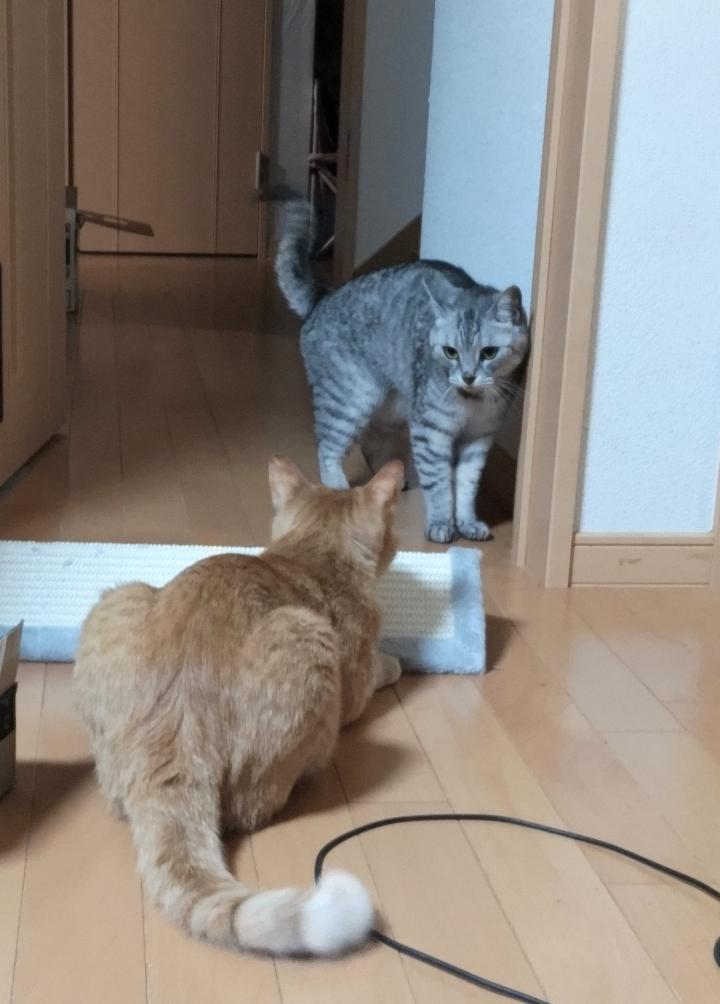 他の子たちに遊ぼう〜とけしかけてまたケンカになっています(@_@)