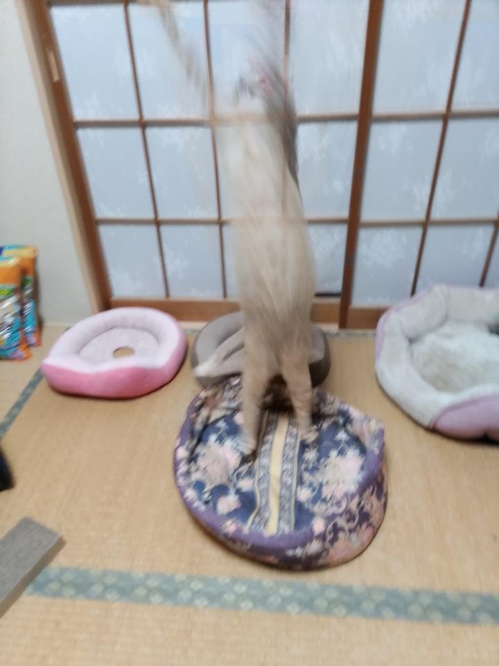 そして猫じゃらしに夢中ののんた。