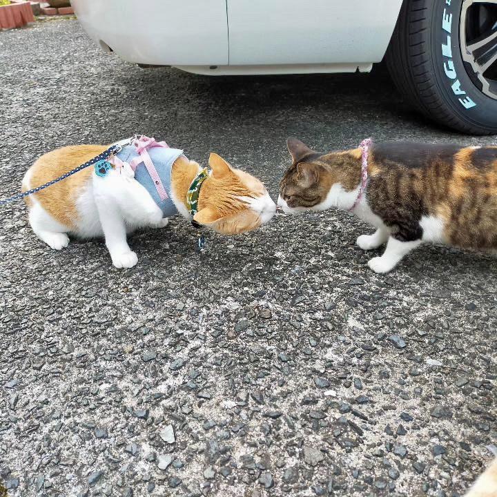 おともにゃちのフーちゃんとみい介くんは快くお出迎えしてくれたのに、猫見知りのボクちんは緊張しちゃったんだにゃ💦