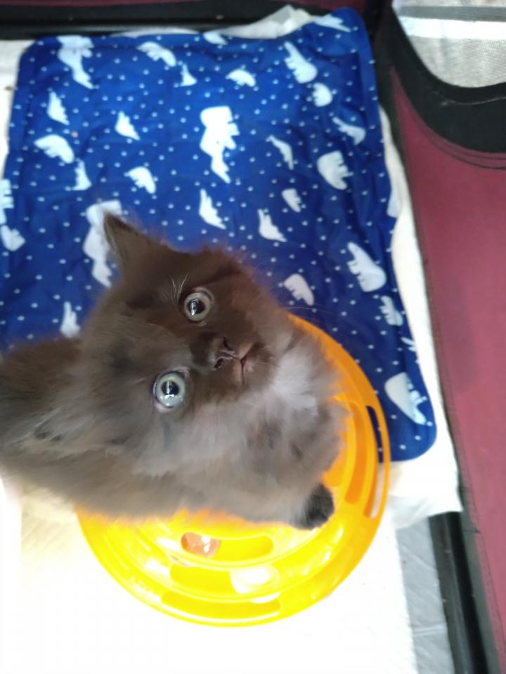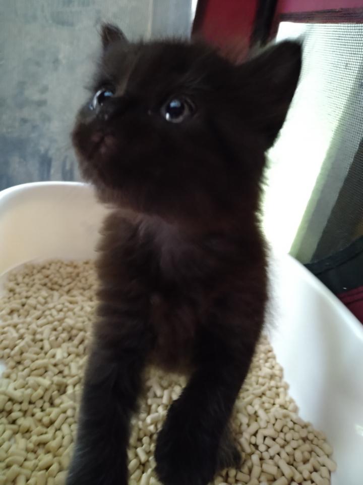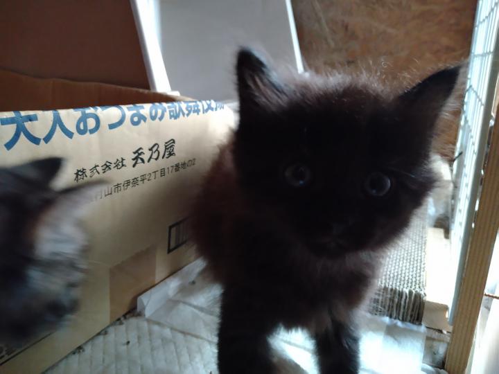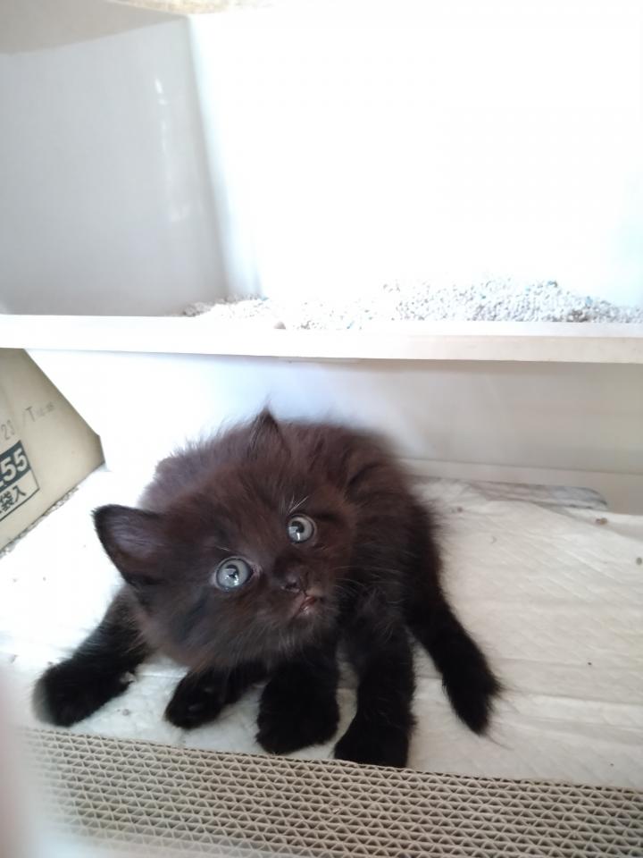 特徴:チョコのような黒色で白い毛も少し混じる長毛、一番成長が早く人懐こい