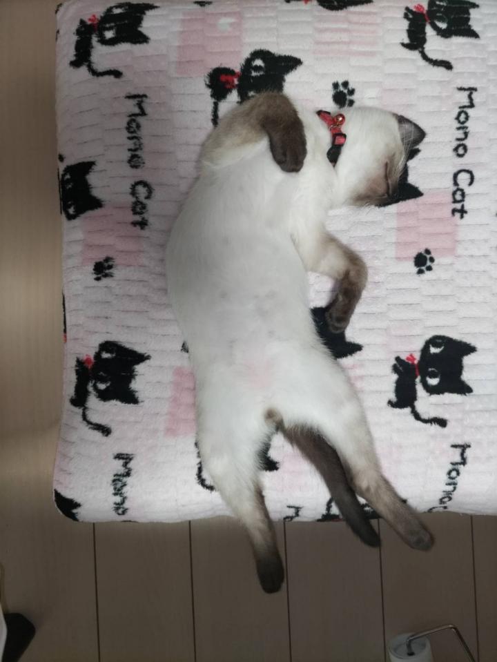 最後に末っ子のライくんは…股を広げてリラックスしながら爆睡中!