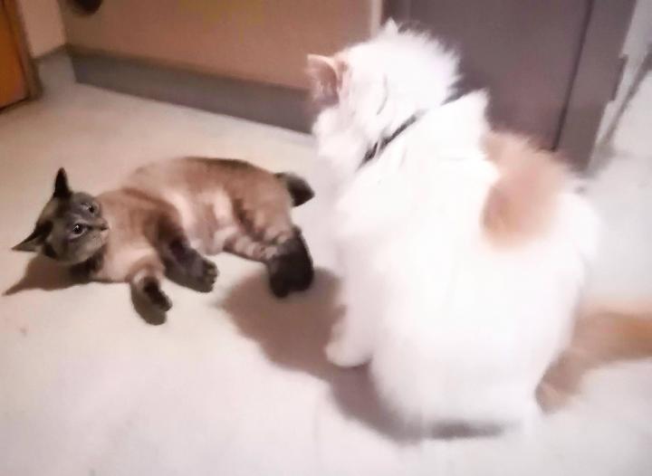 シャルルさんはヤモリさんをポコスカ・・・💦