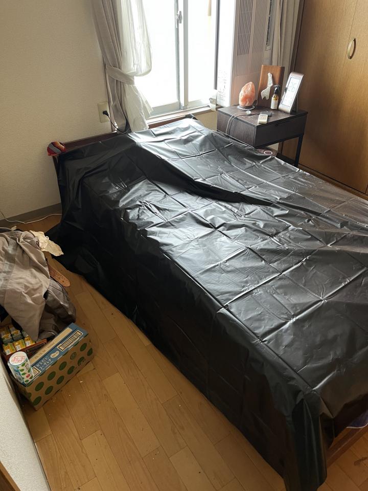 ついでにお粗相するので、ベッドにカバーを買いました。これはAmazonで990円。PVC製でおしっこは通りません。ベッドシーツも防水のものに変えました。