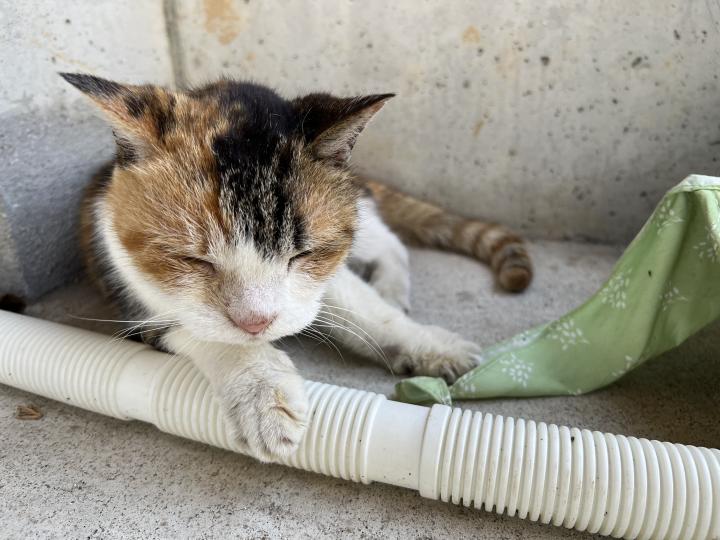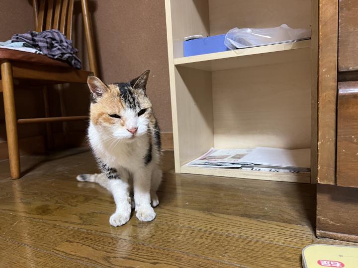 かなりの老猫で腎臓病であり週一で点滴治療をしている猫なのでそんなに動きまわれません。