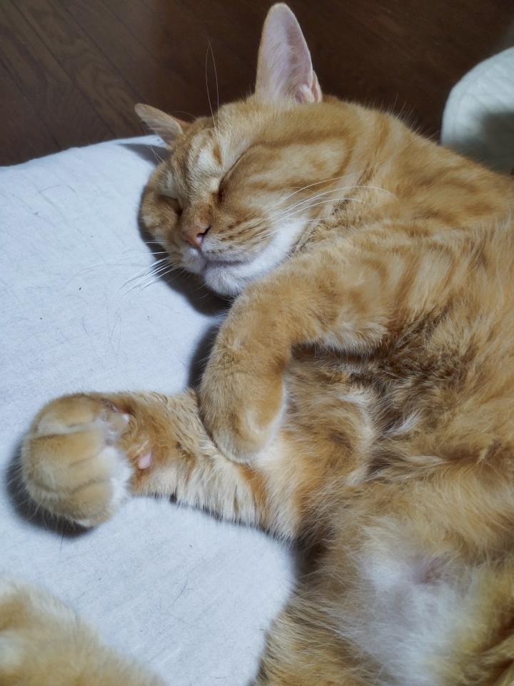 雷雨が去って疲れ果てて寝てるあーちゃん。おやすみ。
