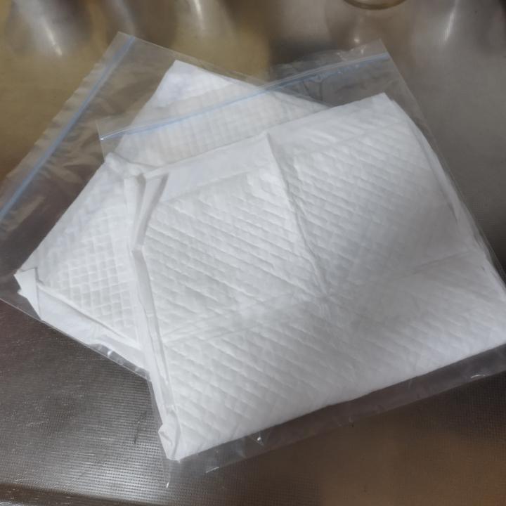 ①チャック付き袋にペットシートを入れる