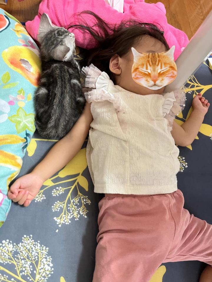 次女がお昼寝してたら、サッと現れて添い寝を始めたローマくん🐱✨️