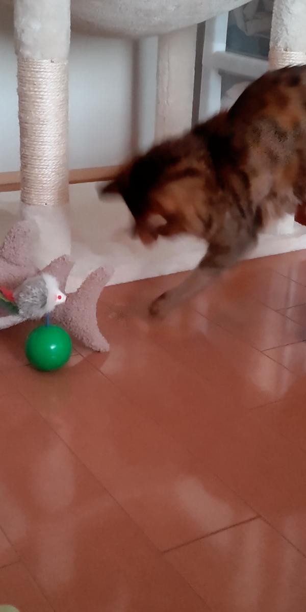 ちなみにトイレの砂(チップ)を掻き出して追いかけて運動してるので、百均で鈴入りボールを買って出してみた所、ガン無視でした。