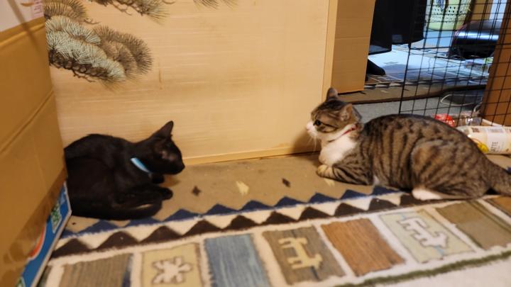 多頭飼いは初めてでできるのかなと思いましたけど、最初に飼ってたソラが慣れてきたみたいで威嚇しなくなりました。まだ一緒に寝たりご飯食べたりはしないけど毎日が可愛くて幸せです(笑)