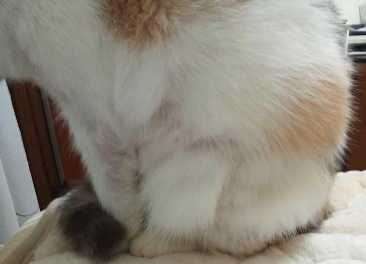 過剰グルーミングするまえの食生活に戻してみるのがいい、とのこと。