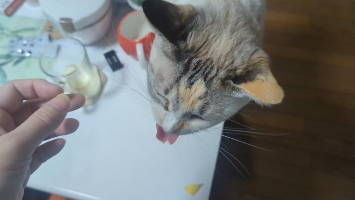 耳のさくらカットならぬ、舌が切れてるように見えたんですよね。まさか虐待じゃないよね?って思ったけどそれ以外の不審な点はなく。その後一緒にいたはずの姉妹がいなくなってしまい(多分事故に遭ったと思われる)1匹になり、おなかが大きくなってしまったのを見て保護に至りました。結局うちの子になっているわけですが、舌が切れている理由なんてわかるわけもなく。