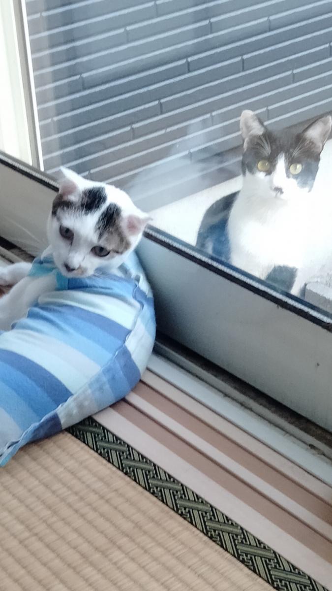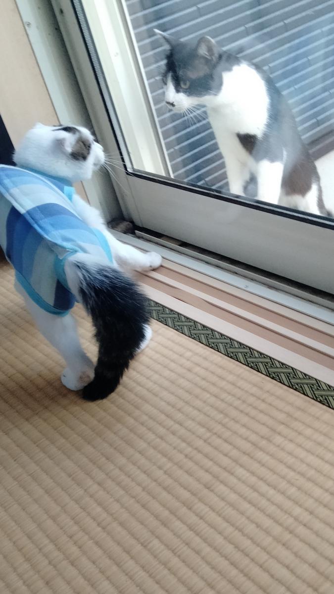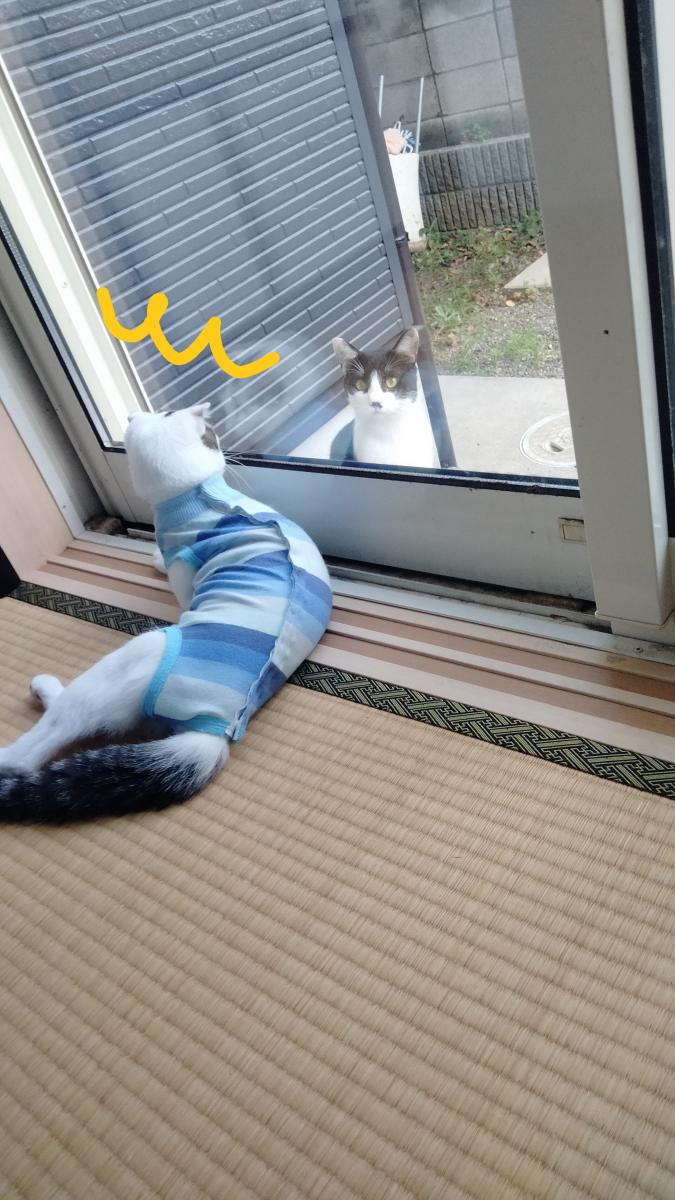 かめちゃんは 野良くんに威嚇し
