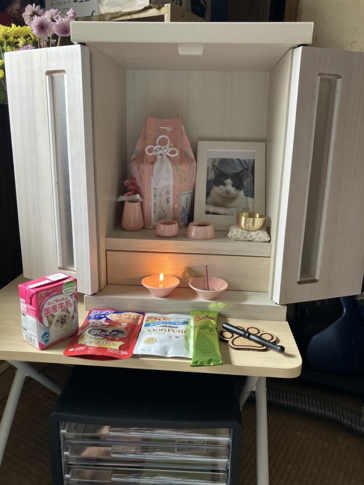 最近スバルお坊ちゃんがミーコの仏壇にお供えしているフードとお水を飲んでいると思っていたのですが!犯人はスバルお坊ちゃんではなかった!犯人はネズミ!仏壇のお供え物の側に黒い糞が2つ明らかにネズミの糞!去勢前は盗み食いを頻繁にスバルお坊ちゃんがやっていたので(お水は飲んではいなかったが!)スバルお坊ちゃんに半沢直◯の大和田常務ばりの土下座を🙇♂️しました。スバルお坊ちゃんごめんなさい!免疫抑制剤シクラバンス飲ました後涙目、ヨダレだらだら2時間後でないとご飯✖️可哀想なのですが仕方ない