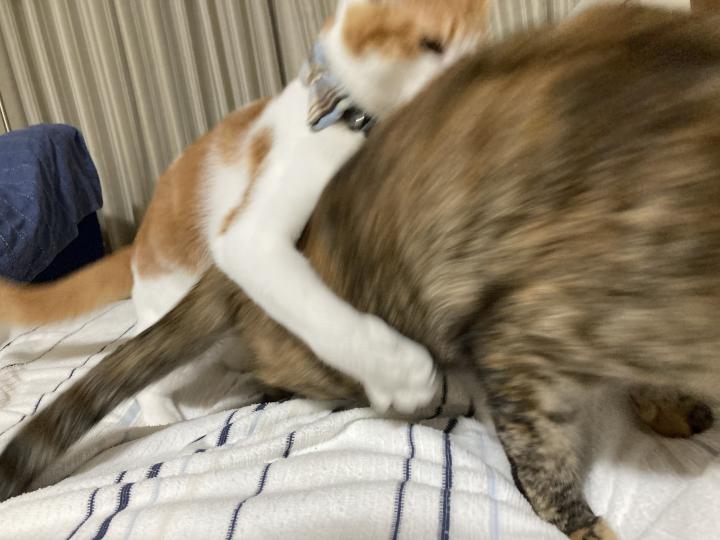 ポンちゃん、機嫌良くふみふみしてたのに、すだち君にガッと来られて…😆