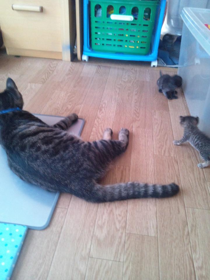 だいたいこんな感じで常に見張って危険地帯行くとくわえて運んで戻してました。