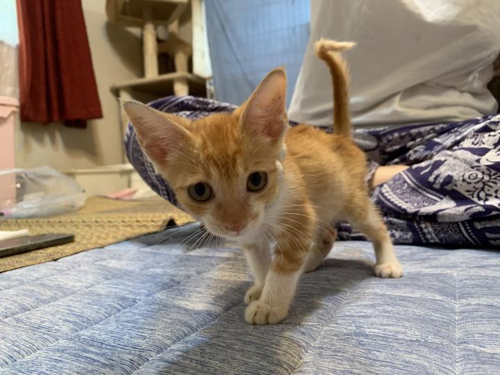 そして、新入りくん。茶白。2ヶ月かな。男の子。道路の白線に居たのでラインくん。