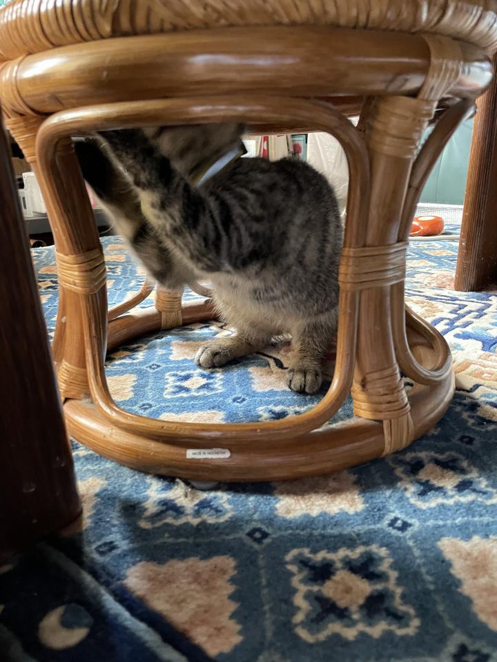 2年前に亡くなった祖母が愛用していた木製のイス(インドネシア産w)で爪とぎし始めましたΣ(゚д゚;)