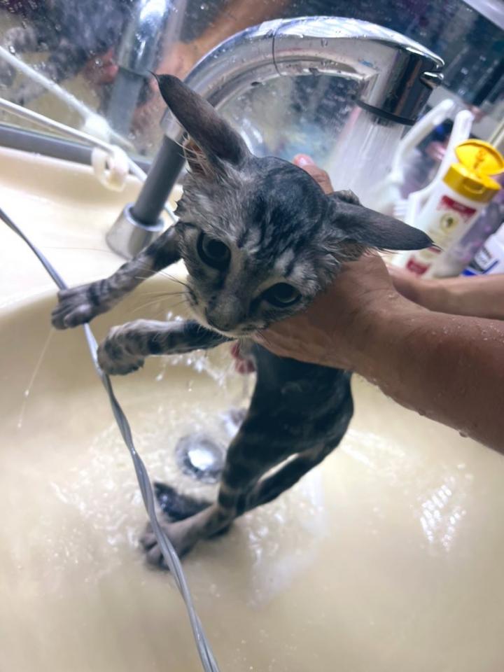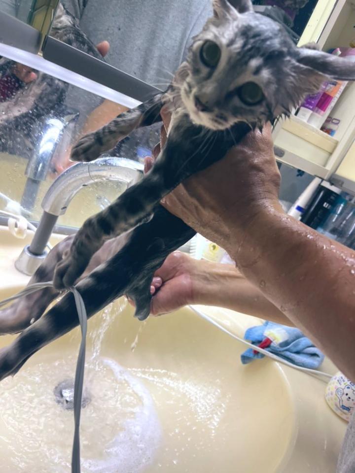 ローマさん、ちょいちょいニャーニャー助けを求めて鳴いてたけどそこまで抵抗せず🐱
