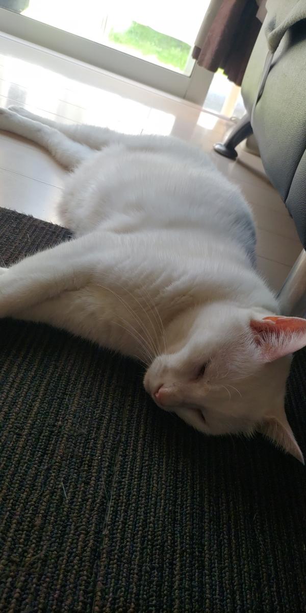 まーくんは、最近サンルームとエアコンの効いたリビングを往復しています。