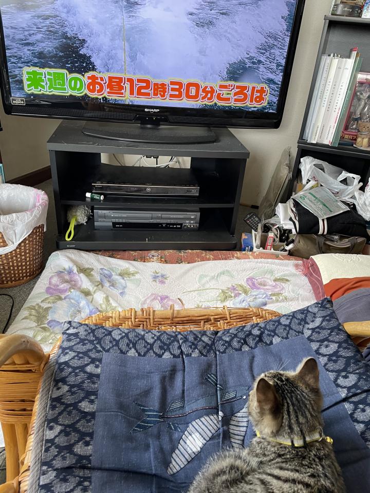 お昼になると、母ちゃん定位置の椅子でテレビ(ヒルナンデス)鑑賞。
