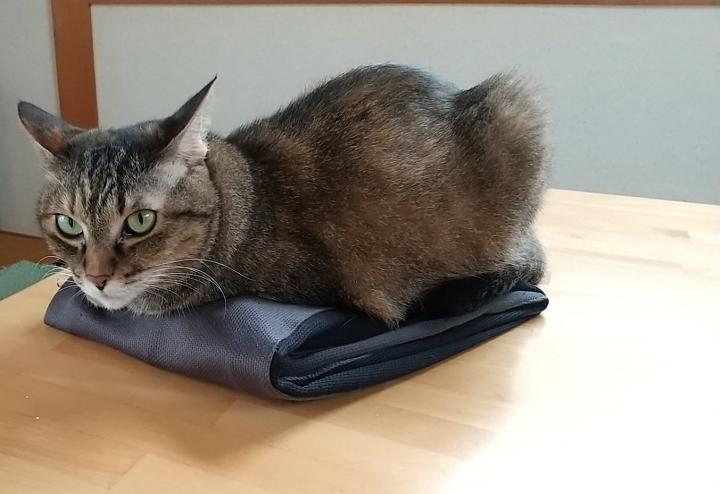 座布団よりもテーブルの上、テーブルの上よりも畳んで置いている服の上に乗る猫でした。