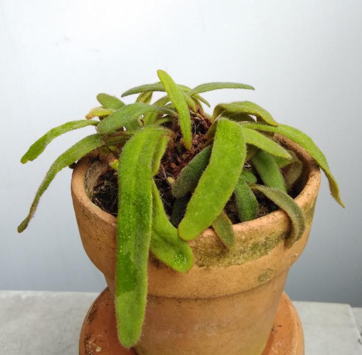 ビロードシダ 葉っぱの表面が細毛で被われています、まるでビロードのような肌触り。湿度のある場所で、樹木や岩肌にくっ付いて生活します。🐓